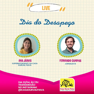 .#PraCegoVer: A imagem possui o título “Live: Dia do Desapego”, e contém todas as informações já citadas no texto acima. Apresenta, centralizadas, as fotos de Ana e Fernando, um ao lado do outro, mas em molduras separadas. No canto inferior direito, está a logo da Casa Durval Paiva.